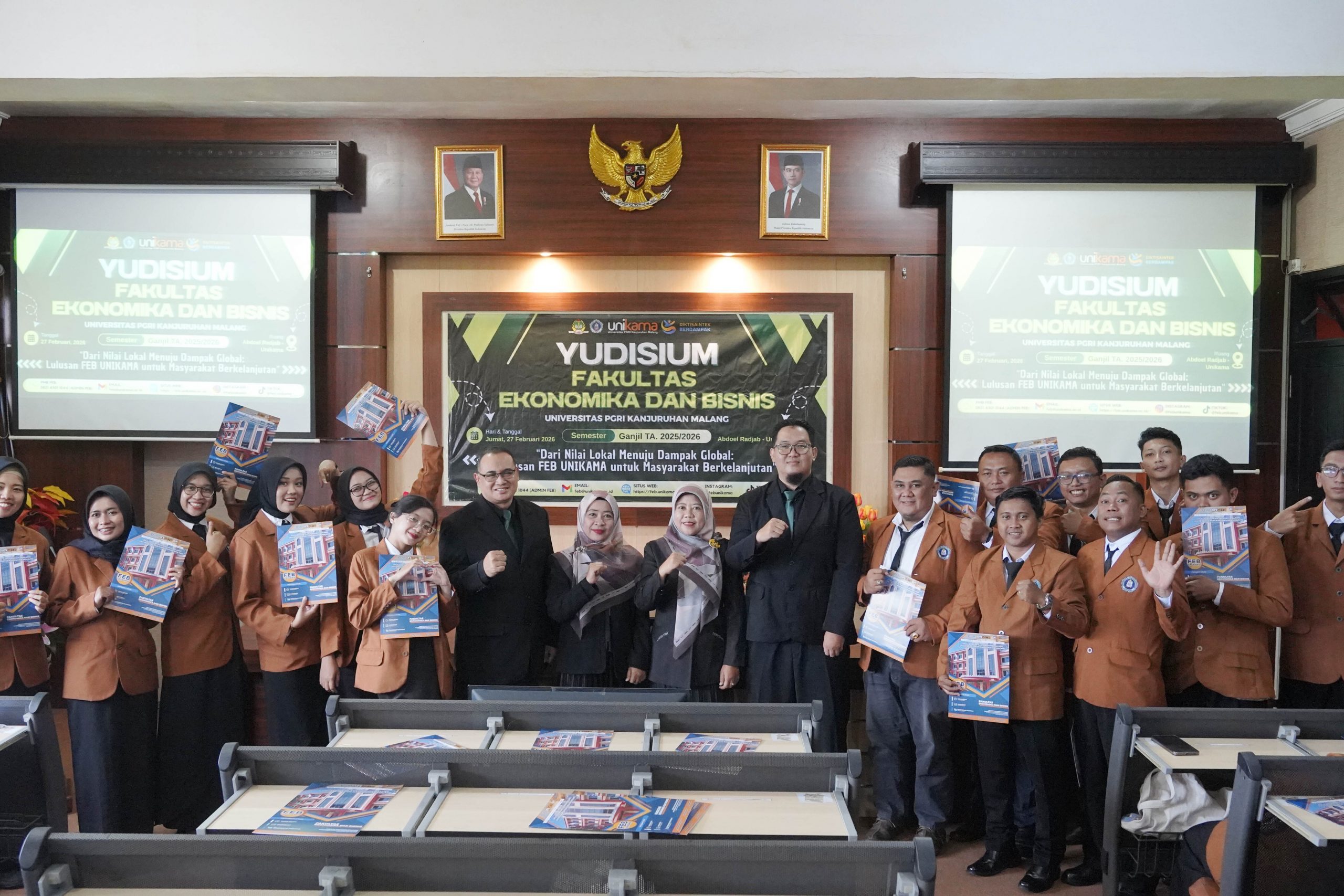 MALANG – Fakultas Ekonomika dan Bisnis (FEB) Universitas PGRI Kanjuruhan Malang (Unikama) kembali melahirkan generasi baru yang siap berkontribusi bagi bangsa. Sebanyak 54 mahasiswa resmi dikukuhkan dalam prosesi Yudisium Semester Ganjil Tahun Akademik 2025/2026 yang berlangsung khidmat di Ruang Abdoel Radjab pada Jumat (27/2/2026).