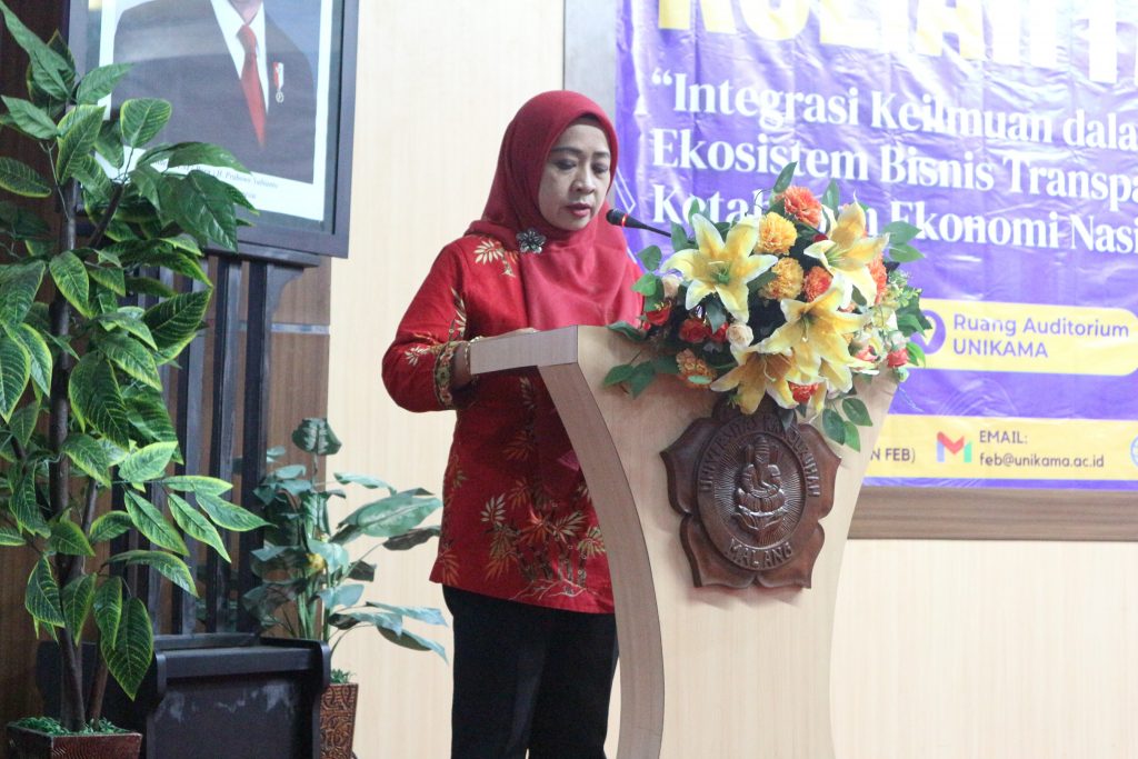 Dalam sambutan pembukaannya, Dekan FEB Unikama, Dr. Rita Indah Mustikowati, SE., MM., menekankan pentingnya bagi mahasiswa untuk tidak hanya terpaku pada teks buku, tetapi juga menyerap dinamika dunia kerja yang terus berubah. “Melalui kuliah tamu ini, kami berharap para mahasiswa memperoleh wawasan yang lebih luas mengenai pentingnya integrasi keilmuan—termasuk pengembangan akuntansi forensik, manajemen operasional, dan kebijakan ekonomi—dalam membangun ekosistem bisnis yang transparan dan berintegritas. Pengetahuan tersebut diharapkan dapat memperkaya perspektif akademik sekaligus mempersiapkan mahasiswa menghadapi tantangan dunia profesional di masa depan,” ujar Dr. Rita.